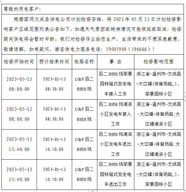 電網檢修公告