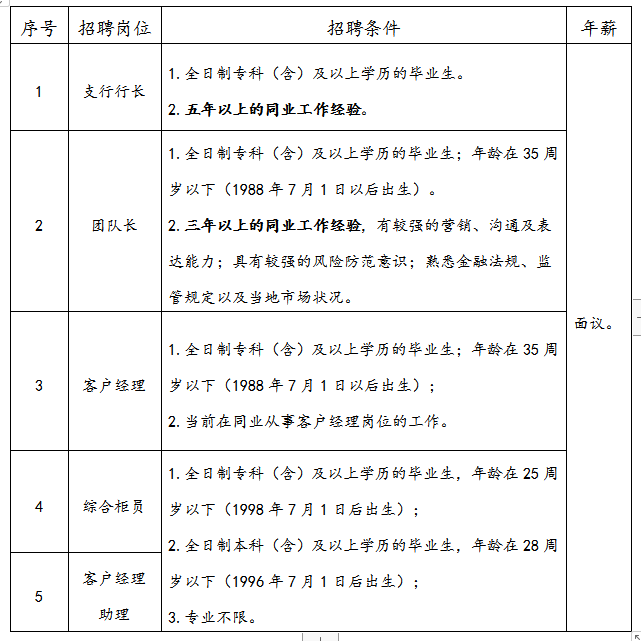 1.支行行長(zhǎng)、團(tuán)隊(duì)長(zhǎng)、客戶經(jīng)理材料審核通過(guò)后,面試時(shí)間將以短信形式另行通知。