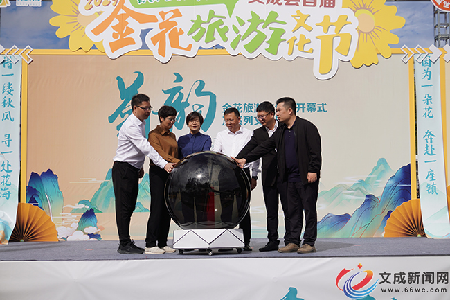 文成新聞網訊(記者 華榕 季志遠)秋高氣爽、金菊飄香,11月4日上午,文成縣首屆金花旅游文化節如約而至,開幕式及系列文藝活動,讓游客沉醉在湖田村的金絲皇菊文化魅力和秋天的美景之中?h人大常委會副主任金一玲、副縣長王榮華、縣政協副主席張麗俊參加開幕式。