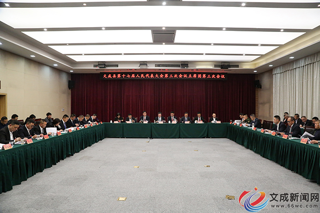 文成新聞網訊(記者 夏林艷 雷成)2月5日下午,縣十七屆人大三次會議主席團舉行第三次會議。大會主席團常務主席羅招政、楊德聽、鄭建華、呂金記等參加會議。