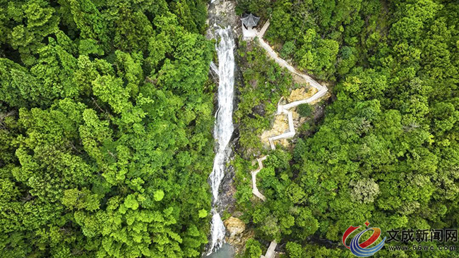 該提升項(xiàng)目是文成縣“古韻公陽、太極小鎮(zhèn)”鄉(xiāng)村旅游項(xiàng)目,總投資233萬元,6月初已完工。感興趣的游客可以沿著登山步道拾級(jí)而上,在瀑頂亭中休憩,親身感受這深山瀑布的美麗景致,領(lǐng)略文成百瀑之鄉(xiāng)的獨(dú)特魅力。