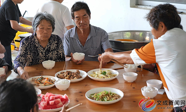 臨近中午,安置點準備了豐富可口的飯菜,大家圍坐在一起,熱熱鬧鬧地吃了起來!坝腥、帶魚、西瓜,跟家里一樣!贝迕耜悗陀验_心地說道。安置點里的轉移群眾多為老年人,為了保障他們的身體健康,鄉里安排駐聯村干部、醫護人員24小時與轉移人員一起同吃同住,切實做好安置點各項服務保障工作。