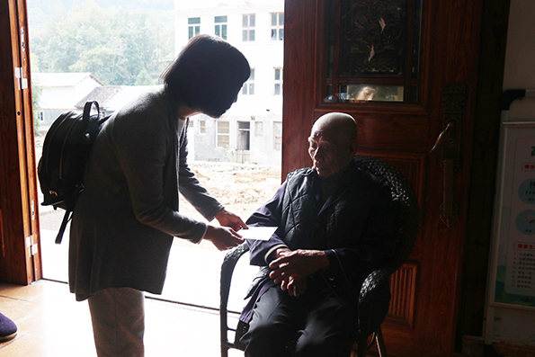 上午9點33分,記者在黃坦鎮富康村看望慰問了留欣法老人。