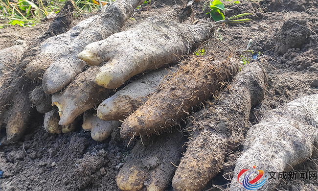 文成新聞網訊(記者 徐露露 雷成 見習記者 雷思涵)眼下,正是文成糯米山藥成熟收獲的黃金時節。這種被譽為“地下珍寶”的美味食材,正陸續開挖并上市。