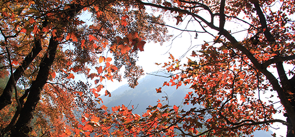 雖然,路旁的楓樹還在一個勁地綠著,滿樹旺盛的生命還在全力抗擊秋的浸染,尤其是那碩大的堅挺,似乎是堅毅的宣言,然而,偶爾的一片落葉,用通紅通紅的顏色在訴說秋的消息,用無怨無悔的墜落在體證秋的秘密,用清晰可數的葉脈在講述秋天的不可抗拒——文成的秋天,真的來了。