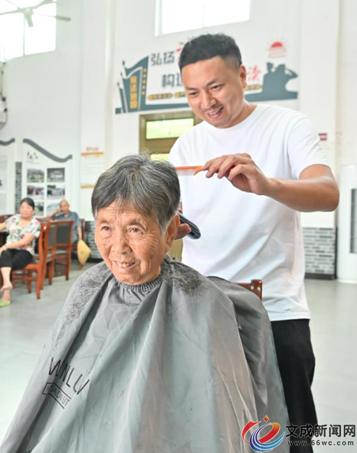 “去峃口理發又遠又要花錢,在我們村里多方便,還免費。”今年69歲的鄭翠娥笑著夸贊。