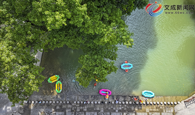 文成新聞網訊(記者 毛慧楠 季向賢 朱偉)在峃口鎮九山村九溪底,蜿蜒的河道如一條碧綠的絲帶穿梭在青山之間,湍急的水流中,色彩鮮艷的橡皮艇載著游客順流而下,不時激起雪白的浪花,歡笑聲、驚呼聲回蕩在山谷。