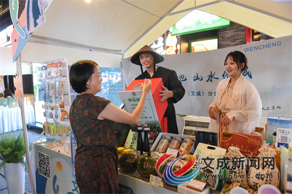 來到“全城園博”文成展區,“文成元素”撲面而來。流動展示屏上滾動播放著文成伯溫市集、百丈漈景區取景電視劇等,全方位呈現文成特色。皇菊、黃年糕、云山木耳等文成特色農產品在展區整齊陳列,以伯溫文化、紅楓元素和百丈漈武俠為主題的文創產品用最直觀的方式“介紹”文成,吸引了眾多市民圍觀與采購。