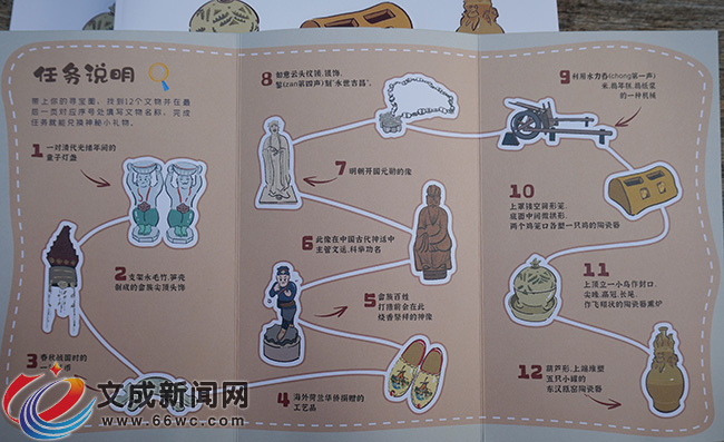 在活動現場,前來參加活動的市民在領取1張尋寶任務圖后,就可以沉浸式開啟文博體驗了。只見大家根據手中的尋寶圖,奔走在各文物之間,尋找到所有指定文物,在圖冊最后一頁對應序號處填寫文物名稱,完成所有任務后,就可以兌換一份神秘文創禮物。