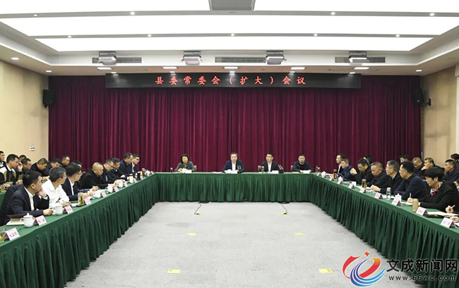 文成新聞網訊(記者 夏季 李友漢 朱偉)12月8日上午,縣委常委會召開(擴大)會議,傳達學習市委十三屆九次全體(擴大)會議精神,研究部署我縣貫徹落實意見。縣委書記羅招政主持會議,縣四套班子領導楊德聽、劉金紅、鄭文東等出席會議。
